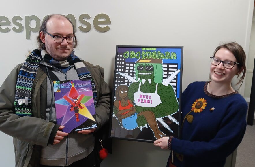 York-based author and comic-book artist, Brendan Hulse-Storr, has been making the most of his recent grant from United Response’s Peoples’ Fund by publishing his first graphic novel “Genesis of the Star-Knights” together with a bold, bright and colourful merchandise range to accompany the book. This includes t-shirts, baseball caps, pin badges and coasters!