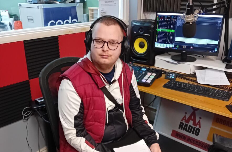 “There’s lots of people I want to thank for getting me where I am. Lydia and Martin were learning mentors at ROC College who suggested the 12-week radio course, Lesley and Tom who supported me as Employability Tutors, and Sam too for supporting me through the course and getting me my chance at Access All Aerials. If you’d told me 2 years ago, I’d be broadcasting to thousands of people I’d have said ‘no way’, but now I’m doing it and loving it.”